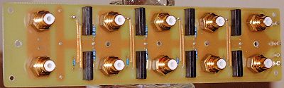 | Die Buchsenplatte mit den vergoldeten Buchsen und Relais |
