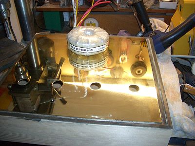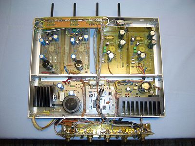 | Der fertig verdrahtete Verstärker von Oben, bereit ins Gehäuse eingesetzt zu werden. |