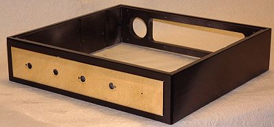 | Das fast fertige Gehäuse in Schwarz hochglänzend mit polierter Messingfront |
