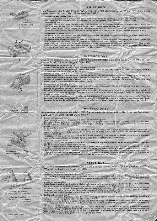 für Plattenwechsler 1002 E und 1002 F sowie für