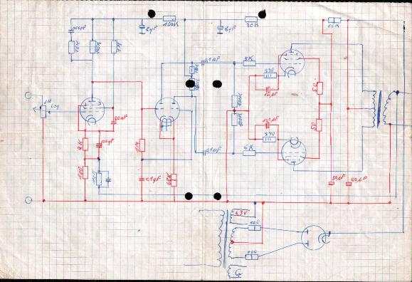 Originalzeichnung aus dem Jahre1965 einer Röhrenendstufe